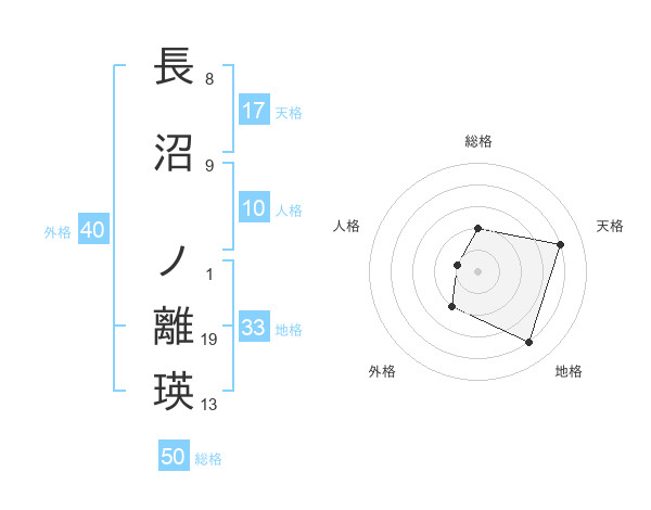長沼 ノ離瑛さんを姓名の画数から五運を鑑定