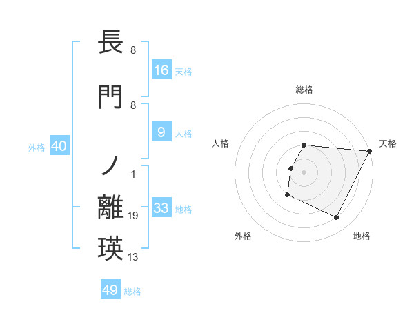 長門 ノ離瑛さんの総格は49画の2点!