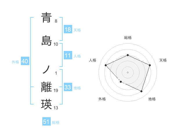 青島 ノ離瑛さんを姓名の画数から五運を鑑定