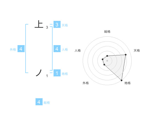 上 ノさんの天格は3画の4点!