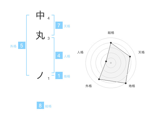 中丸 ノさんの総格は8画の4点!