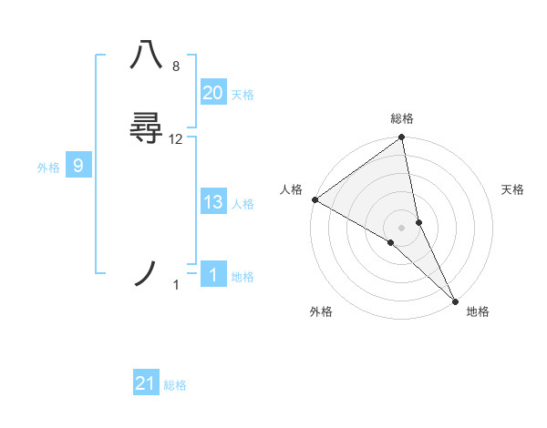 八尋 ノさんの地格は1画の5点!