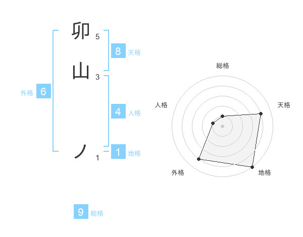 卯山 ノさんの総格は9画の1点!