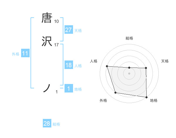 唐沢 ノさんの地格は1画の5点!