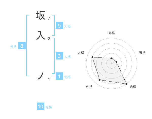 坂入 ノさんの地格は1画の5点!