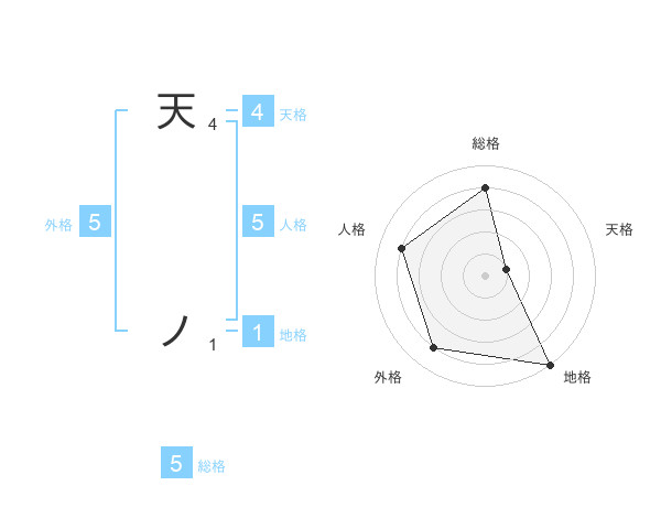 天 ノさんの総格は5画の4点!