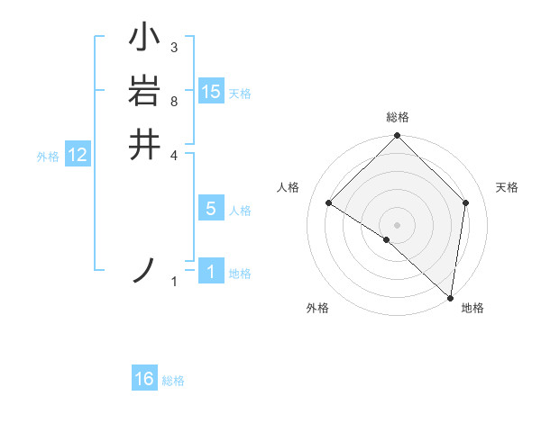 小岩井 ノさんの天格は15画の4点!