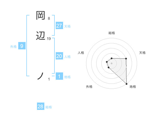 岡辺 ノさんを姓名の画数から五運を鑑定