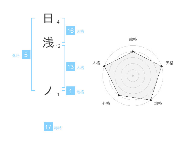 日浅 ノさんの天格は16画の5点!