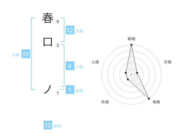 春口 ノさんの総格は13画の5点!