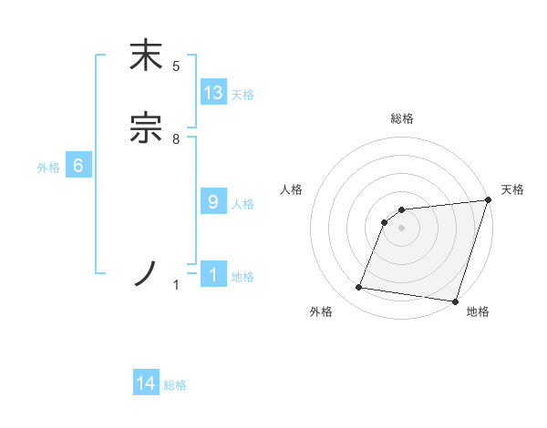 末宗 ノさんの天格は13画の5点!