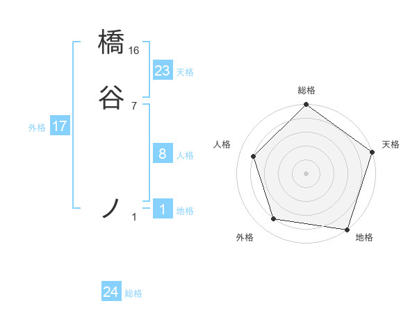 橋谷 ノさんの天格は23画の5点!