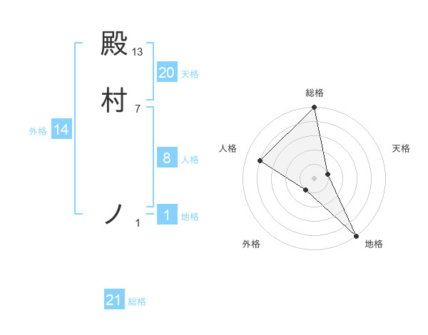 殿村 ノさんの総格は21画の5点!