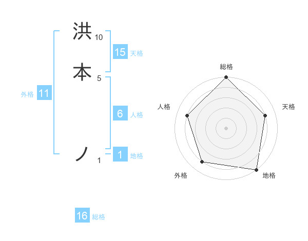 洪本 ノさんの総格は16画の5点!
