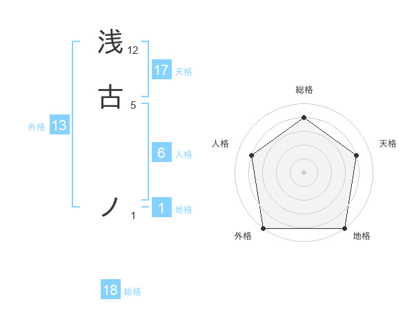 浅古 ノさんの外格は13画の5点!