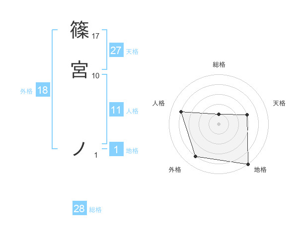 篠宮 ノさんの地格は1画の5点!