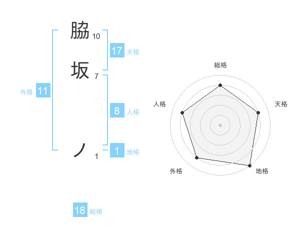 脇坂 ノさんの天格は17画の4点!