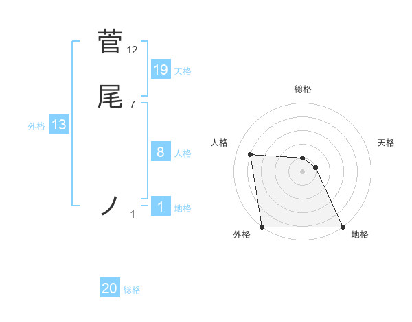 菅尾 ノさんの総格は20画の1点!