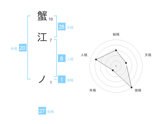 蟹江 ノさんの地格は1画の5点!