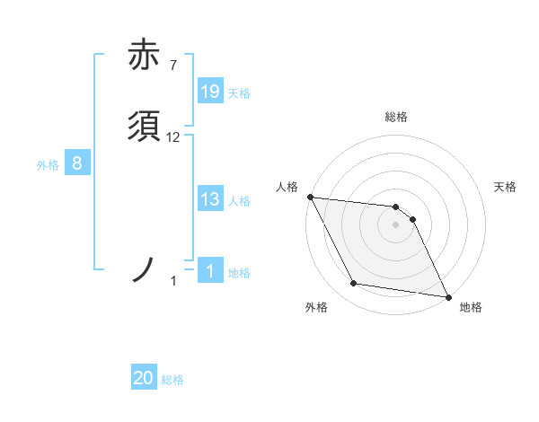 赤須 ノさんの総格は20画の1点!