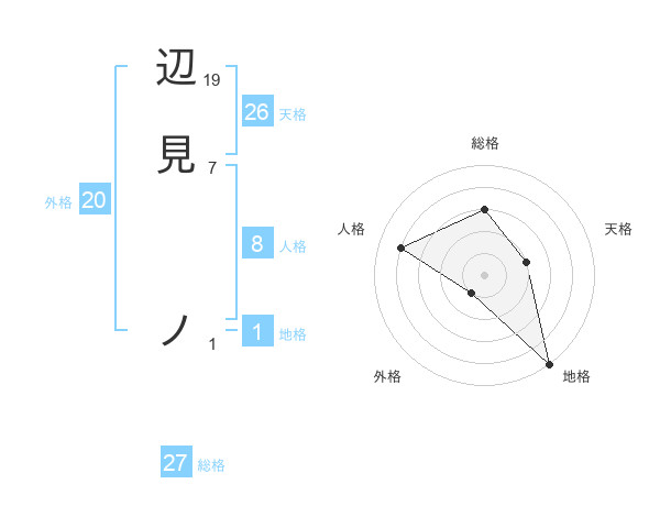 辺見 ノさんの天格は26画の2点!