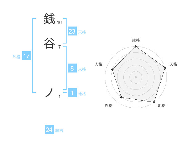 銭谷 ノさんを姓名の画数から五運を鑑定
