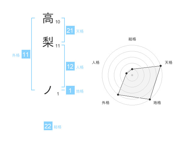 高梨 ノさんの総格は22画の1点!