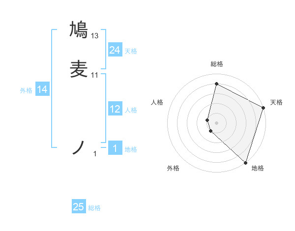 鳩麦 ノさんの天格は24画の5点!