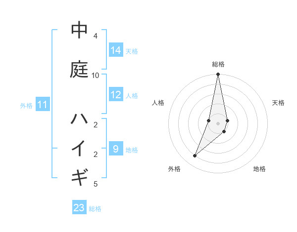 中庭 ハイギさんの総格は23画の5点!