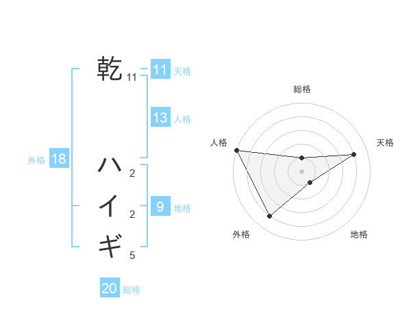 乾 ハイギさんを姓名の画数から五運を鑑定