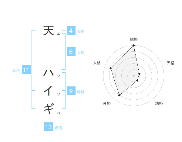 天 ハイギさんの総格は13画の5点!