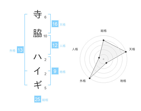 寺脇 ハイギさんを姓名の画数から五運を鑑定