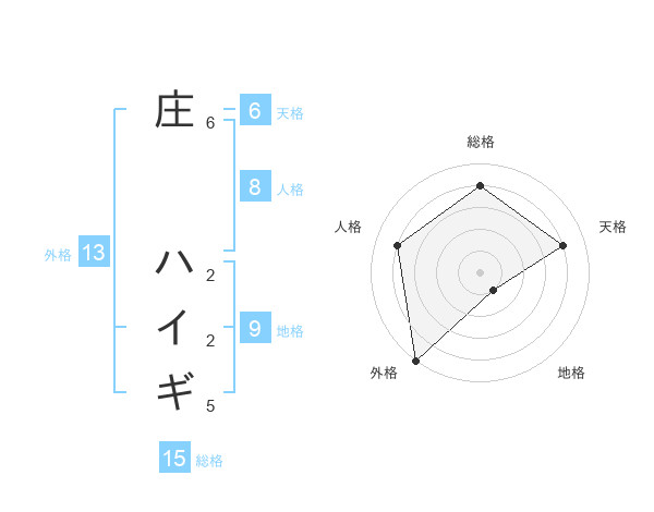 庄 ハイギさんの外格は13画の5点!