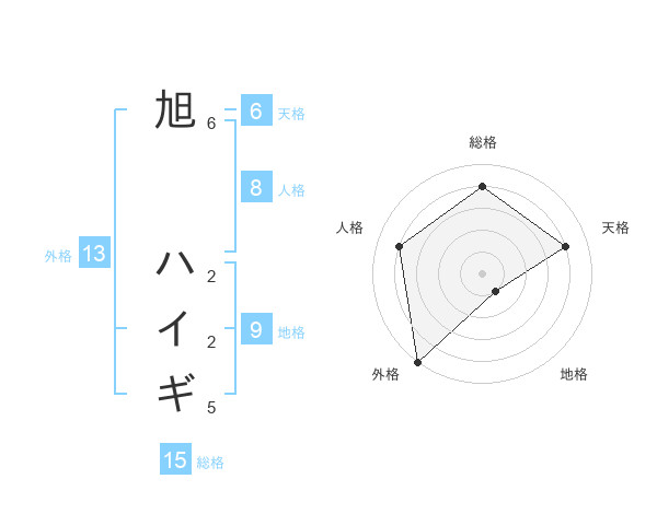 旭 ハイギさんの外格は13画の5点!