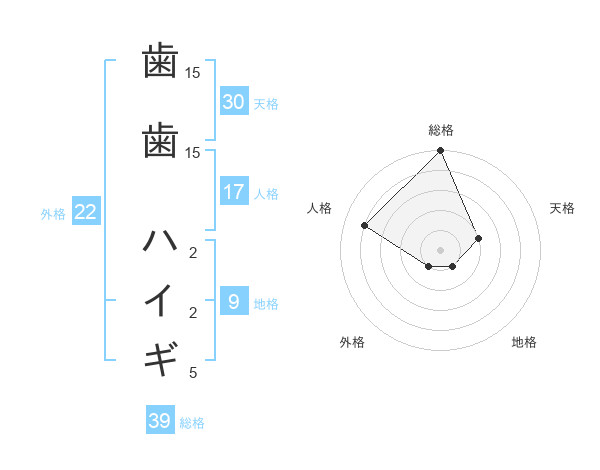 歯歯 ハイギさんを姓名の画数から五運を鑑定