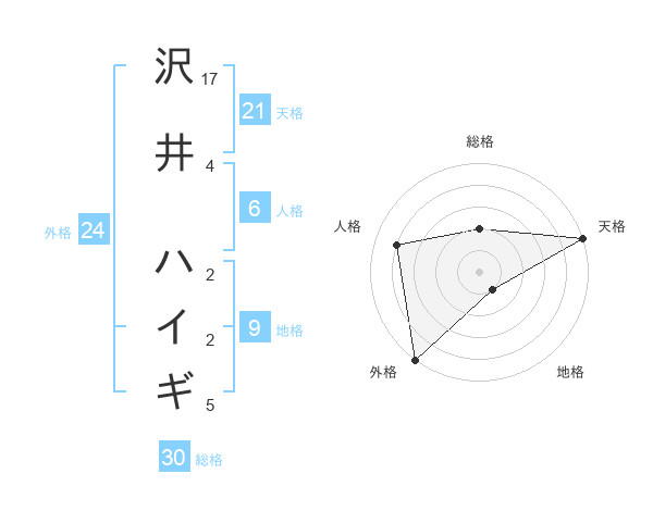 沢井 ハイギさんを姓名の画数から五運を鑑定