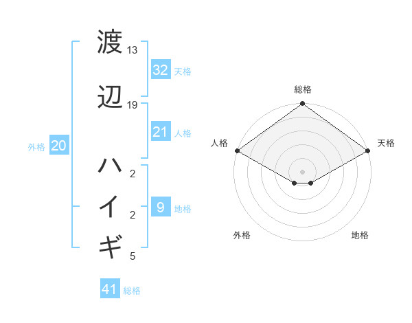渡辺 ハイギさんの天格は32画の5点!