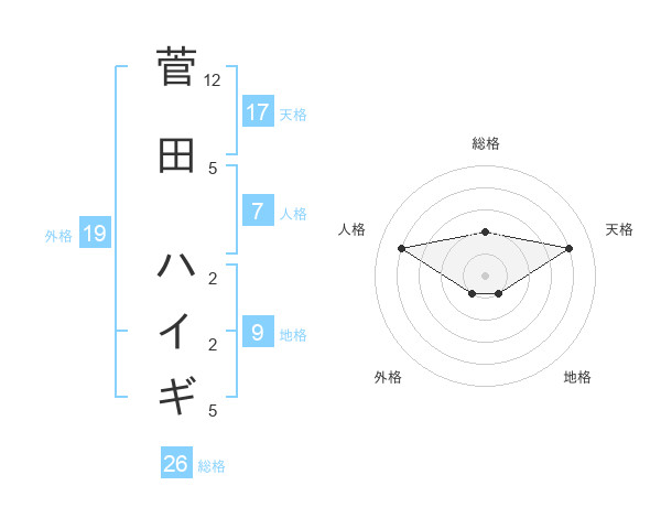 菅田 ハイギさんを姓名の画数から五運を鑑定