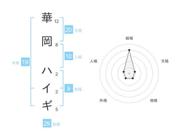 華岡 ハイギさんの総格は29画の4点!