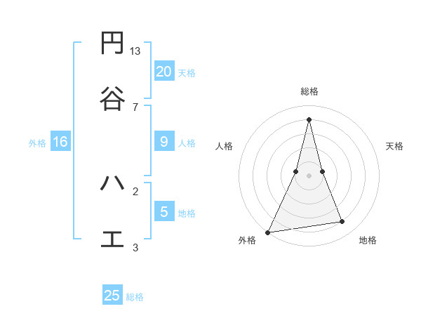 円谷 ハエさんの総格は25画の4点!
