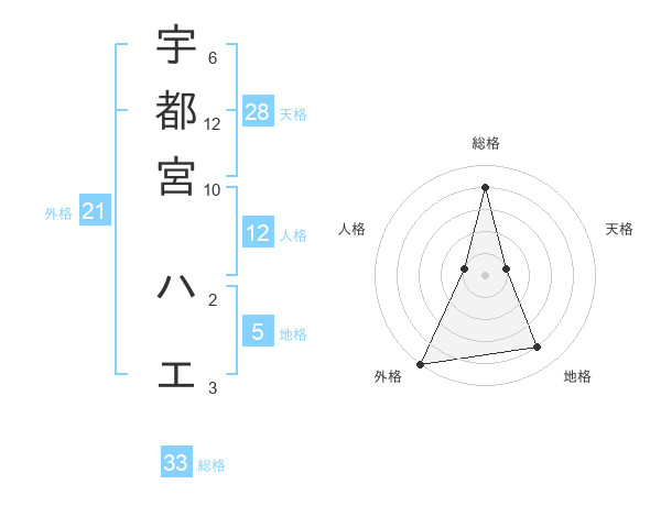 宇都宮 ハエさんの外格は21画の5点!