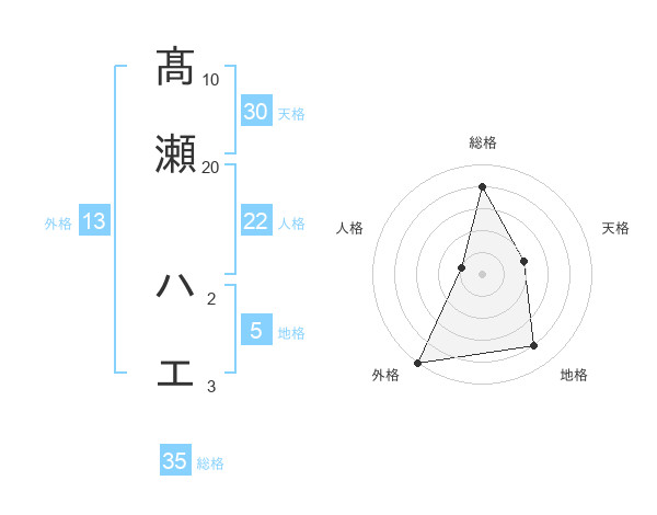 髙瀬 ハエさんの外格は13画の5点!