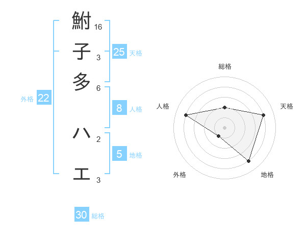 鮒子多 ハエさんの総格は30画の2点!