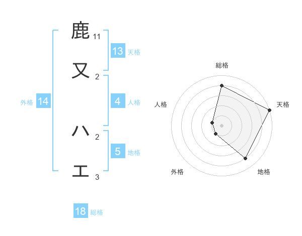 鹿又 ハエさんの天格は13画の5点!