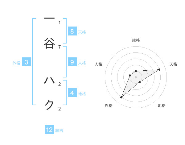 一谷 ハクさんの総格は12画の1点!