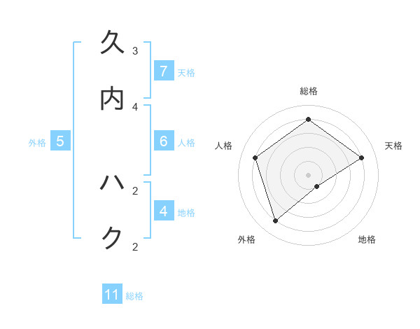 久内 ハクさんの総格は11画の4点!