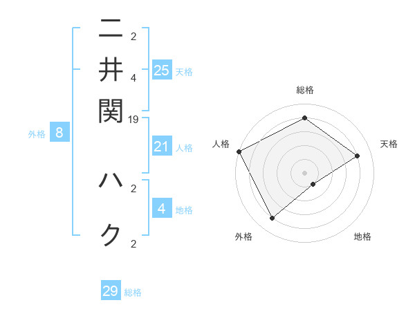 二井関 ハクさんの天格は25画の4点!