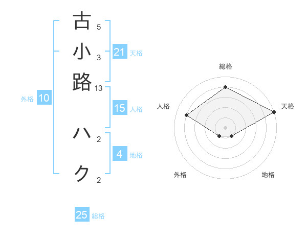 古小路 ハクさんを姓名の画数から五運を鑑定