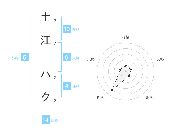 土江 ハクさんの総格は14画の1点!