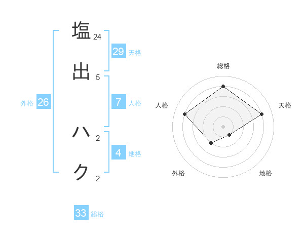 塩出 ハクさんの総格は33画の4点!